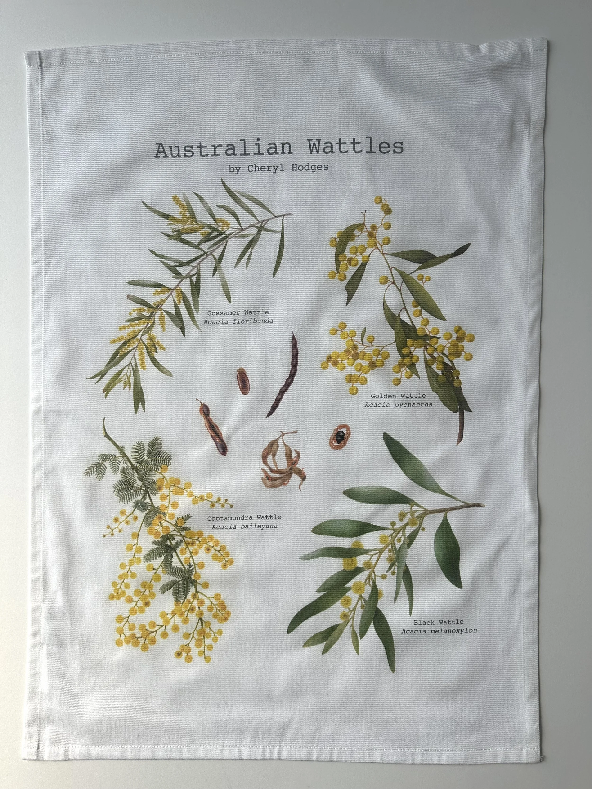 This tea towel features our Australian native bees. The fabric is designed by Cheryl incorporating her watercolour paintings of various Australian native bees on a cream coloured background. We have over 2000 species of native bees in Australia so let’s embrace their beauty and diversity.